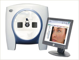 同一の照射条件と3次元ポジションマッチング機能により、画像をピッタリ重ね合わせることができ、圧倒的な再現性を実現した顔画像撮影装置です。一台で「カラー写真」と「UV写真」の撮影ができ、「シミ」「シワ」「毛穴」「肌の色の均質性「ポルフィリン」「隠れジミ」の解析をします。