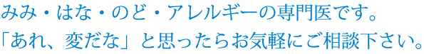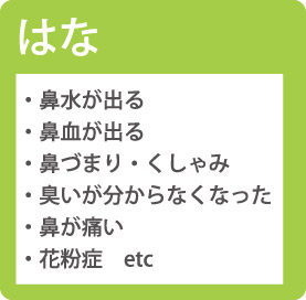 中耳炎、副鼻腔炎(ちくのう症)、かぜ、インフルエンザ、花粉症、鼻炎、難聴、めまい、睡眠時無呼吸などの診断、治療いたします。アレルギー性鼻炎の鼻閉に対しては、CO2レーザーを用いた下鼻甲介粘膜焼灼術も行います。 また、補聴器の相談も行っておりますので、お気軽にお越し下さい。 (当院の聴覚検査室は補聴器適合検査の施設基準に適合、許可されております。)
